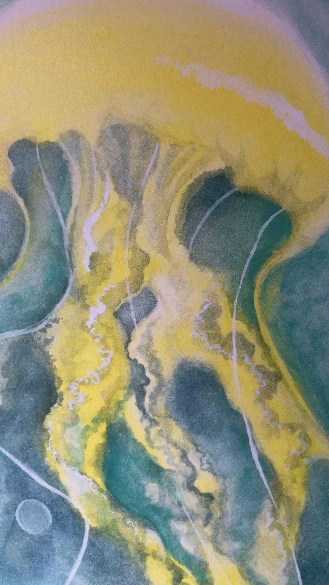 ‘Sun Jellyfish’ Print of watercolour and crystal pigment painting by Gemma Thody